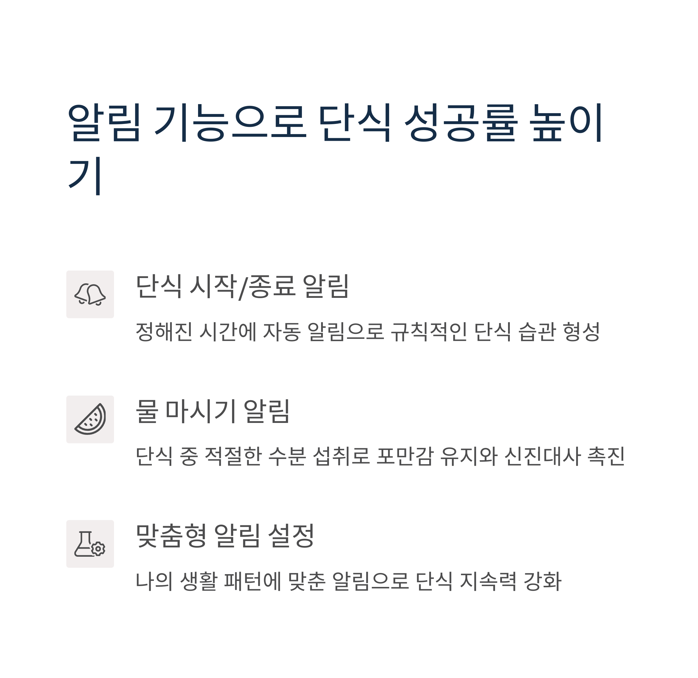단식 시작 시간, 식사 가능 시간 등을 미리 알림 설정해 두면 실수 없이 패턴을 유지할 수 있어요.